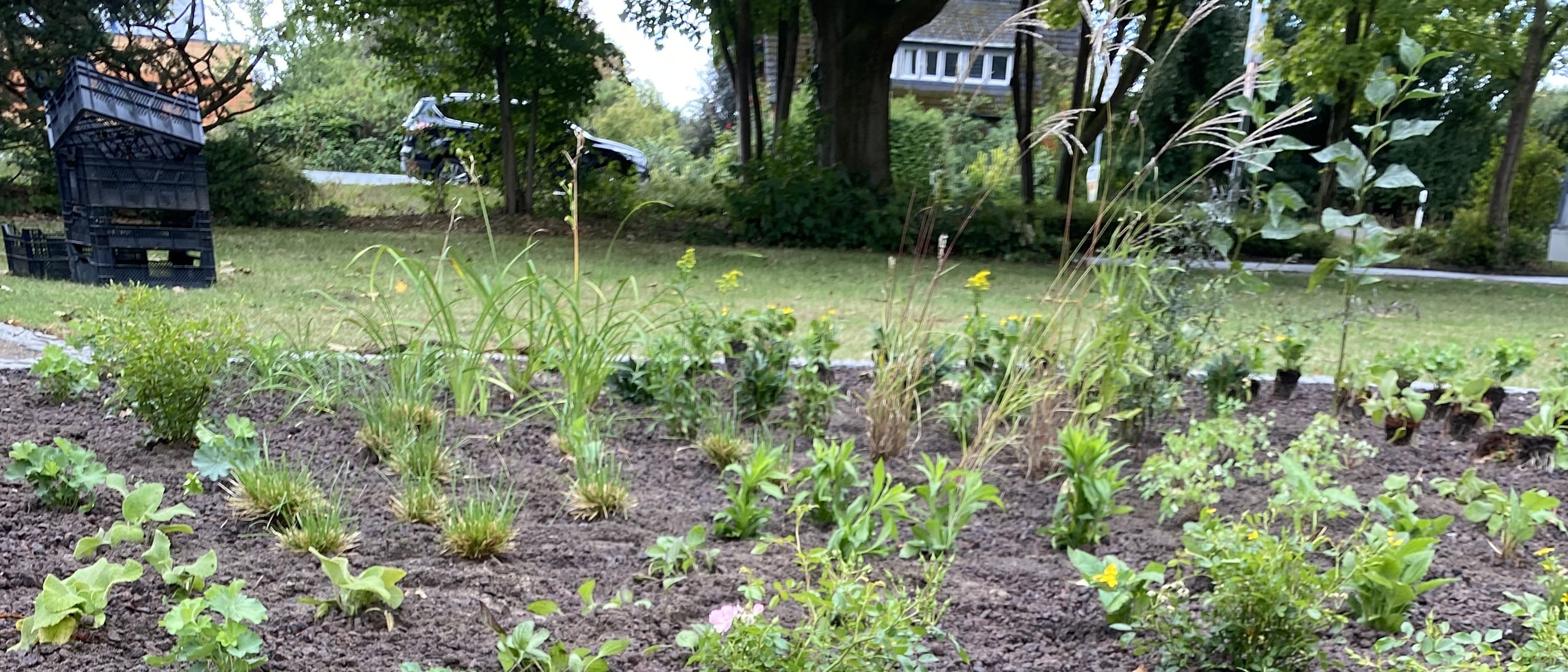 - Klimaanpassung: durch hitzeresiliente, standortgerechte Pflanzen